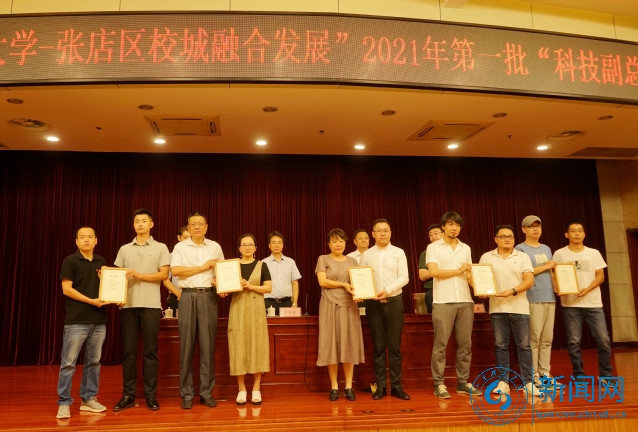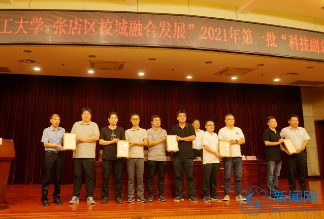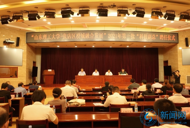 本网讯 7月22日上午,“山东理工大学-张店区校城融合发展”2021年第一批“科技副总”聘任仪式在张店区会议中心举行。校党委常委、副校长苏守波,张店区委常委、组织部长江贵军,张店区科技局党组书记、局长王磊等出席。我校服务社会办公室负责人、受聘博士教授,张店区委组织部、工信局、农业农村局等部门负责人、企业家参加仪式,仪式由王磊主持。