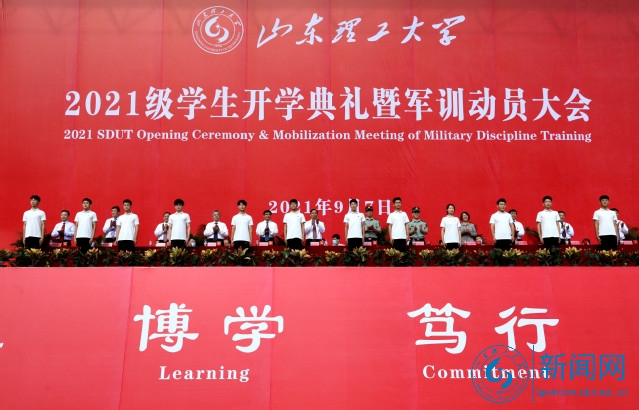 本网讯 金秋送爽,云程万里。9月7日上午,我校2021级学生开学典礼暨军训动员大会在中心体育场举行,1万余名朝气蓬勃的新同学相聚在美丽的稷下湖畔,加入山理工温馨的大家庭。