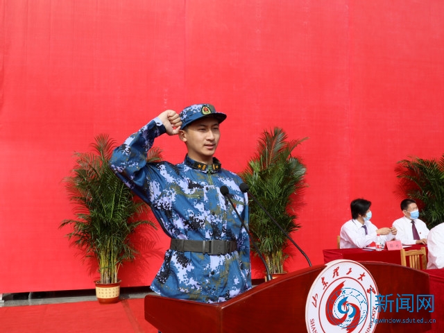 在管理学院2021级本科生庄新福的带领下,全体新生郑重宣誓:牢记历史使命,树立远大理想,践行“厚德、博学、笃行、至善”的校训,敢于担当、勇于创新、乐于求知、勤于实践、严于修身,勇担时代使命,不负青春韶华,争做“五有”人才,为实现中华民族伟大复兴的中国梦而努力奋斗。