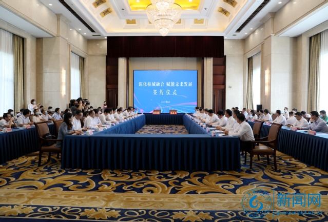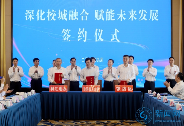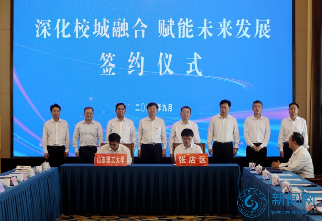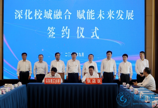 在热烈的气氛中,胡兴禹、孙宏业分别代表双方签订《关于进一步推进校城融合深入发展的协议》。根据协议,双方在5年有效期内,聚焦共建“环山东理工大学创业创新带”,深化创新校城融合发展模式,坚持高校学科专业对接地方产业体系、地方平台资源支持高校创新创业、地方科技创新有效利用高校优势资源、校城共引共用人才资源,共建科技研发总部中心、山东理工大学科技园、“校友经济”孵化园、赋能张店发展智库等“四平台”,打造科创人才集聚高地、青年就业创业高地、基础教育高地、文化发展高地等“四高地”,加快推进区域创业创新一体化,推动实现更深层次、更广领域融合发展新局面。双方将建立校城合作机构、常态化联系沟通机制、项目化运行推进机制,探索市场化合作机制,建立数据统计制度流程。