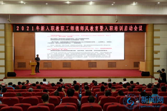 本网讯 为帮助新进教职工了解学校文化内涵,加强师德师风教育,熟悉学校规章制度,完成角色转变,提高对教育教学工作重要性的认识及教学科研能力,9月11日上午,2021年新入职教职工师德师风教育暨入职培训启动会议在3号教学楼报告厅举行。校党委副书记、校长胡兴禹出席并作师德师风建设报告,校党委常委、副校长刘国华主持会议。相关部门负责人及130余名新进教职工参加会议。