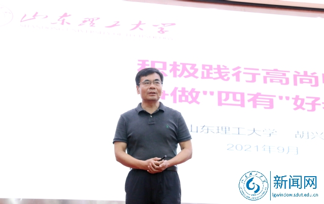胡兴禹作了题为“积极践行高尚师德,争做‘四有’好老师”专题报告。他从教师是崇高、伟大而受人尊重的职业,师德的重要意义,师德建设的措施三个方面,为新入职教师作了一场主题鲜明、内容丰富的报告。