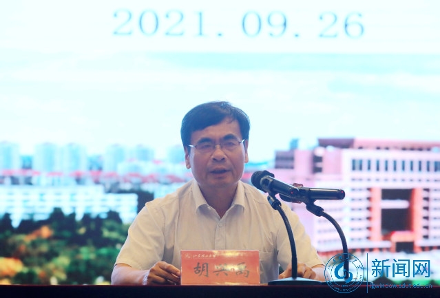胡兴禹作了讲话。他充分肯定了学校2021年国家基金申报工作取得的成绩,对获得资助的人员表示祝贺,对相关部门、各学院和单位的辛勤劳动表示感谢。