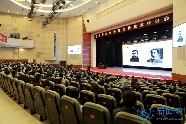 本网讯 10月20日上午,学校在大学生艺术中心礼堂举行党史专题宣讲暨形势政策报告会,淄博市委副书记、淄博市人民政府市长、市政府党组书记马晓磊作专题宣讲报告。校党委书记吕传毅主持报告会,校党委领导班子成员胡兴禹、邓昌亮、王立斌、苏守波、张思灵,党史学习教育领导小组成员,各学院党委、党总支书记、分管学生工作副书记,青年教师代表和学生代表,淄博市政府秘书长宗志坚,马晓磊所在的市政府办公室机关第一党支部全体党员参加报告会。