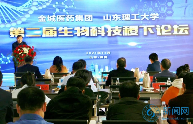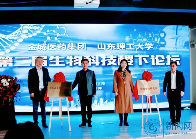 本网讯 11月13日,金城医药集团与我校在山东金城医药研究院有限公司,举行第二届生物科技稷下论坛暨“山东省技术创新中心、金城生物研究院”揭牌仪式。校党委常委、副校长魏修亭出席,淄博市科技局副县级干部李伟出席,生命与医药学院领导班子及部分教师,淄博大学城发展中心相关负责人,金城医药集团高管及金城医药研究院研发人员参加活动。