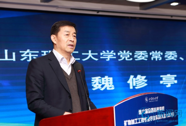 魏修亭在致辞中简要介绍了学校和资源与环境工程学院基本情况。他表示,学校将扎实做好疫情防控常态化背景下的赛事组织和保障工作,以承办此次比赛为契机,进一步搭建并发挥好平台作用,加强与专家学者、兄弟高校师生的交流合作,共同携手为全国高校矿物加工工程专业建设与创新发展提供更多的思想方法和技术交流。