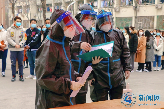 演练的第一个环节是区域封闭。根据张店区疫情防控指挥部建议,将6号学生公寓划为封控区,7号、8号学生公寓和研究生公寓AC座为管控区,安保人员、学工人员和后勤人员对封控区、管控区进行了区域封闭,严格落实限制人员出入、查证、验码、测温、登记等措施。