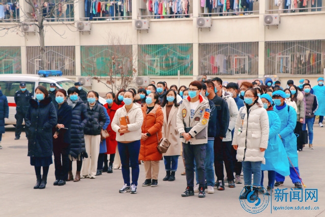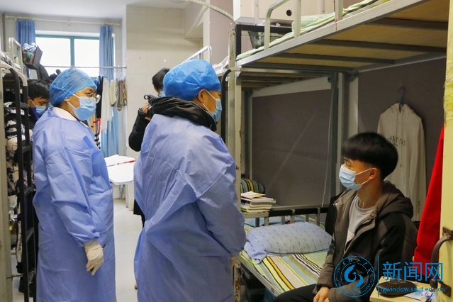 第二个环节是病人转运。医护人员前往患者宿舍指导患者做好个人防护,协助张店区疫情防控指挥部将病人转运至定点医院进行隔离治疗。指导患者同宿舍人员佩戴医用外科口罩,在宿舍等候。