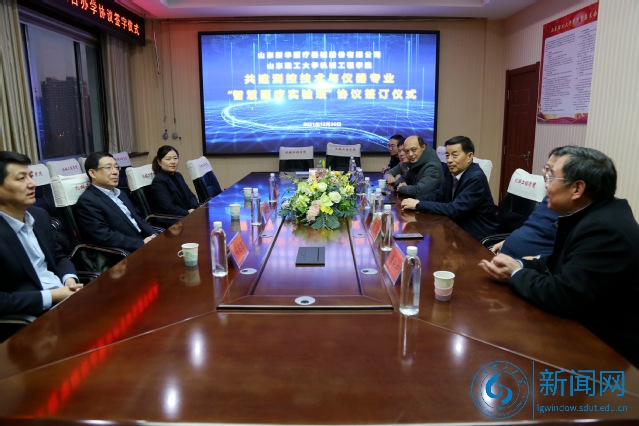 本网讯 2021年12月30日下午,学校与山东新华医疗器械股份有限公司在12号楼五楼会议室举行仪式,续签《共建“智慧医疗新工科实验班”协议》。山东新华医疗器械股份有限公司副总经理、高级工程师杨兆旭,校党委常委、副校长魏修亭出席,新华医疗相关部门负责人及机械工程学院相关负责人参加仪式。