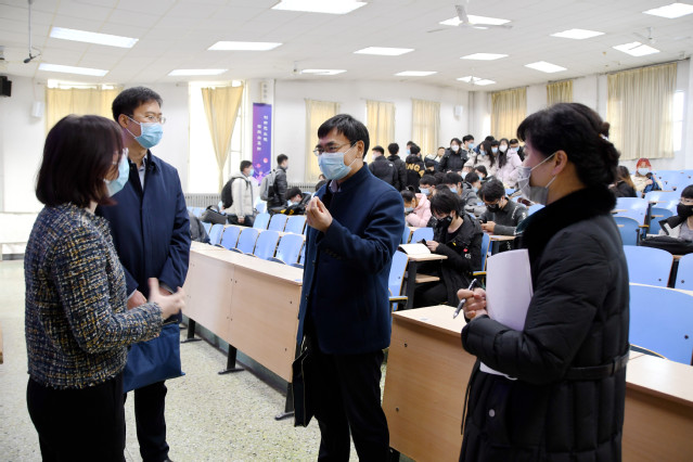 2月21日上午,校党委副书记、校长胡兴禹先后来到4号教学楼201教室、102教室,分别听了计算机科学与技术学院张冬梅老师讲授的“统一建模语言UML(A)”课程、马克思主义学院关利平老师讲授的“毛泽东思想和中国特色社会主义理论体系概论”课程。课堂上,胡兴禹认真听课,不时做着记录。课下,胡兴禹与授课教师进行了交流,对她们的授课情况给予肯定。结合听课感受,胡兴禹谈了自己的体会,希望教师通过潜心研究和不断实践,努力提高课堂教学质量。
