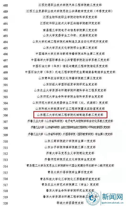 本网讯 近日,教育部公布第三批全国党建工作示范高校、标杆院系、样板支部培育创建单位名单。我校机械工程学院机械制造系教工党支部成功入选“全国党建工作样板支部”培育创建单位。