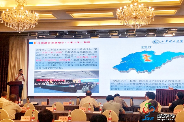 吕传毅以“大米小米一起熬 熬出一锅甜美的粥——山东理工大学服务地方经济社会发展的探索与实践”为题作了专题报告。他结合个人学习、思考,介绍了大学服务社会职能的起源,从发展理念、探索与实践、具体内容和发展成效等四个方面,阐述了我校服务地方经济社会高质量发展的主要做法和取得的成效。